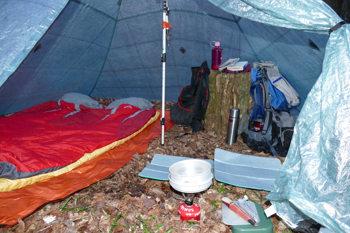 P1010271 20. März 2016 1200 × 800 Ein Stück mit Shakespeare Gemütlich eingerichtet im Tarp – inklusive Nachttisch!