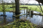 Die starken Niederschläge der letzten Zeit haben dazu geführt, dass viele der Wiesen überflutet sind. Das macht diesen Wanderweg – der viel über Wiesen führt – umso spannender.