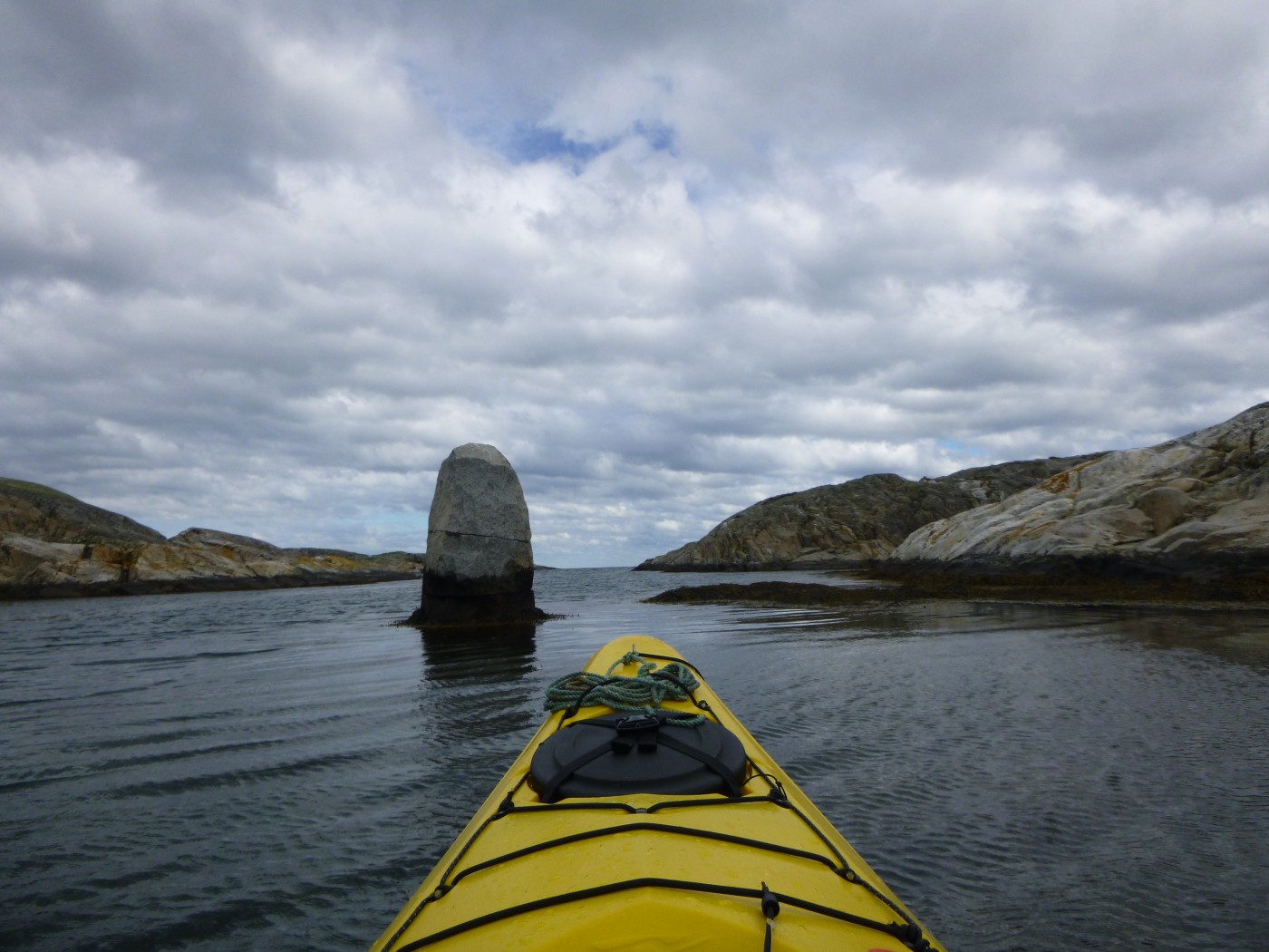 Nach einiger Zeit erkannten wir ein vertrautes Seezeichen, ein großer schwarzer Kreis auf Felsen gemalt, und konnten uns daher an diesem orientieren. Nach mehr als zwei Stunden ununterbrochenem Paddeln erreichten wir schließlich das ruhige Wasser der Schären. Unsere Arme verlangten mit Nachdruck nach einer Paddelpause. Wir waren stolz, die Wetterinseln nun auch aus eigener Kraft erreicht zu haben und kehrten voller eindrucksvoller Erinnerungen auf festen Boden zurück.