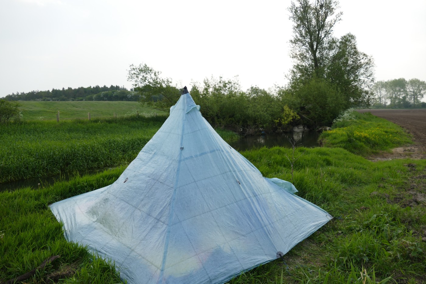 4. Juni 2016 1400 × 933 Mit Packraft die Themse entlang: vom Ursprung bis Oxford Wir paddeln noch kurz und schlagen dann unser Tarp am Ufer auf.