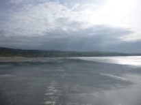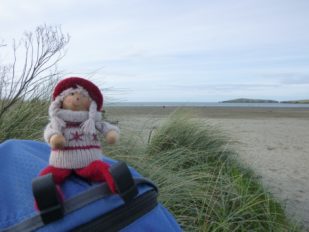 Abschied von Martin, Peter und Birgit, mit denen ich die letzten Tage im Snowdonia Nationalpark verbracht habe. Mit Tomtemi* als Begleiterin eine mehrstündige Busfahrt quer durch Wales bis zum Startpunkt Poppit Sands bei Cardigan. Ein guter Start, die Sonne strahlt mir beim Aussteigen entgegen. Ausschau-Halten nach den Eichel-Symbolen, diese zeigen den National Trail an. Schon geht es los! Ein kurzer Weg eine Straße entlang führt zu meinem heutigen Ziel: einem Campingplatz inmitten von Schafen. Zelt aufbauen, Lämmer anschauen, Essen kochen, mit meinen Nachbarn reden, nachhause telefonieren und schon ist es Zeit für meine erste Nacht alleine im Zelt. Es wird kalt und windig, aber ich schlafe gut.