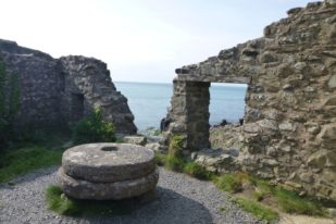 Die Nacht im Jugendherbergsbett hat Wunder gewirkt: ich fühle mich nach guten 10 Stunden Schlaf wie ein neuer Mensch und habe wieder Energie um meilenweit zu gehen. Auch der Rucksack fühlt sich schon deutlich leichter an, sodass ich beschwingt losspaziere. Diese Extraportion Energie veranlasst mich dazu einen kleinen Abstecher zu einer „Woollen Mill“, einer Weberei, zu machen, die etwas abseits vom Weg liegt. Dort wird auch der Rucksack wieder ein bisschen angefüllt! 😉 Insgesamt wandere ich heute 24 km und genieße das Gehen sehr. Gegen Ende des Tages, in Porthgain und Abereiddy bekomme ich spannende Überbleibsel zu sehen aus der Zeit, wo hier Schiefer abgebaut, Ziegel gebrannt und Pflastersteine hergestellt wurden. Nur Zeltplatz kann ich keinen finden, denn ich wandere inmitten von Schafen. In Abereiddy beschließe ich Leute zu fragen, ob ich nicht vielleicht in ihrem Garten zelten darf – das hat ein bisschen Überwindung gekostet. Beim zweiten Haus bin ich erfolgreich und darf mein Zelt mit Blick auf den Strand aufbauen!