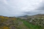 Etwas später ein nicht ganz so angenehmes Erlebnis mit Pferden: Für eine Klopause lege ich meinen großen Rucksack am Weg ab und verschwinde hinter einem Busch. In der Zwischenzeit nähert sich eine Gruppe von etwa 30 Pferden, die offenbar beschlossen haben, dieses merkwürdige Ding inspizieren zu müssen. Misstrauisch beobachte ich das Geschehen aus etwa 100 Meter Entfernung: Ein Pferd nach dem anderen nähert sich meinem Rucksack und schnuppert daran. Was würden sie tun? Und würden sie mich wieder zu meinem Rucksack lassen? Ich habe großen Respekt vor Pferden und beschließe einfach abzuwarten. Nach einer für mich sehr unruhigen Viertelstunde verlieren sie ihr Interesse an dem Ding und entfernen sich wieder ein bisschen. Als ich den Rucksack auf meinen Rücken hieve, schauen sie mich verwundert an.