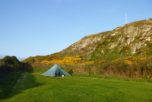Ausgedehnte Mittagspause bei Whitesands, wo ich einige Postkarten schreibe und aufs Meer schaue. Als ich am Abend dann in St. Justinian’s mein Zelt aufschlage, kommt noch einmal die Sonne heraus und beschert mir einen wunderschönen Abschieds-Sonnenuntergang am Pembrokeshire Coast Path.