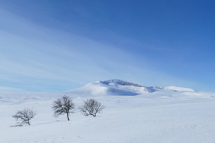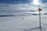 Einer der wichtigsten Gründe warum wir so gerne hier in den schwedischen Bergen unterwegs sind die Landschaft und Natur. Die weiten, weißen Ebenen die wir durchqueren, die runden, von Schnee bedeckten Berge, die stillen Wälder und zugefrorenen Seen. Der tiefe Schnee verbirgt vieles, doch was aus dem Schnee ragt bekommt besondere Aufmerksamkeit. Der einzelne Baum, der eisverkrustete Ast, der Felsblock, der Wald am Horizont, die Spur eines Hasen, das Flattern eines Schneehuhns. Jeden Tag erleben wir eine andere Art von Schnee, eine andere Konsistenz, andere Kristalle, ein anderes Knirschen unter den Skiern. Es hat etwas Meditatives durch diese leere Landschaft zu gehen und man genießt ihre unzähligen Details. Schwer vorzustellen, dass auch hier einmal Frühling einkehrt und der unendliche Schnee verschwindet…