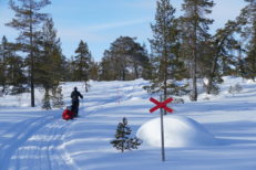 Wir sind nun seit etwa zwei Wochen mit unseren Skiern unterwegs und haben insgesamt 174 km zurückgelegt. Wir sind von Grövelsjön bis Vålådalen gefahren und haben dabei das Rogen Naturreservat und das bergige Gebiet um Helags-Sylarna durchquert. Um einen Einblick in unsere Reise zu geben, beschreiben wir hier vier Themen etwas genauer: die Landschaft, unseren Gepäcksschlitten, die Hütten und die Kälte.