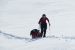 In der Ebene macht sich das hohe Gewicht der Pulka tatsächlich nicht so stark bemerkbar, aber sobald es steil wird, ist es nur mit großer Kraftanstrengung möglich, diese hinter sich her zu ziehen. Wenn es besonders steil bergauf geht, hilft der Rucksackträger mit, indem er mit einem Skistock von hinten anschiebt. Auch das ist ganz schön anstrengend! Im Laufe der zwei Wochen, die wir jetzt unterwegs waren, ist die Pulka natürlich immer leichter geworden, da wir immer mehr von unserem großen Essensvorrat aufgebraucht haben. Ein Leichtgewicht ist sie trotzdem nicht geworden und ist deshalb liebevoll von uns „die dicke Fanny“ getauft worden. Wir sind nach wie vor sehr begeistert von unserer schönen Pulka, aber bevor es weitergeht, werden wir unsere Ausrüstung sehr kritisch durchgehen und einiges zurück zu Mimis Cousine schicken. Uns fällt einiges ein, was wir nicht unbedingt brauchen… Dann fällt uns das Skiwandern hoffentlich etwas leichter, wir können schneller vorwärtskommen und haben mehr Zeit die wunderschöne Natur zu genießen!