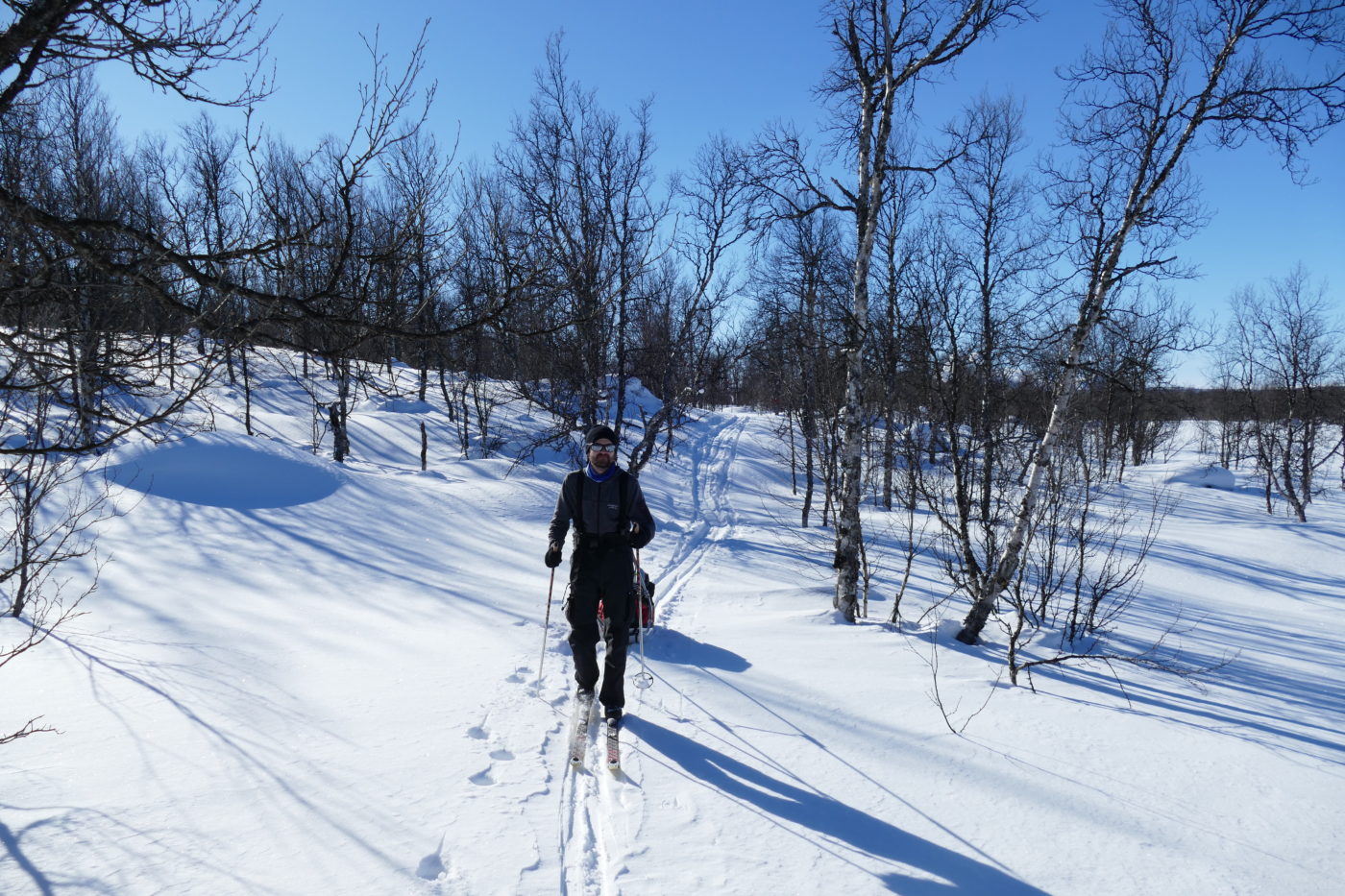 Ammarnäs nach Jäkkvik, 79km in fünf Tagen. Norrbotten, die nördlichste Provinz Schwedens. Hügelige Wälder bestehend aus Nadelbäumen und Birken. Leere Schneewüsten mit Blick auf hohe Gipfel. Sonnenschein und Vogelgezwitscher, ein Hauch Frühling.