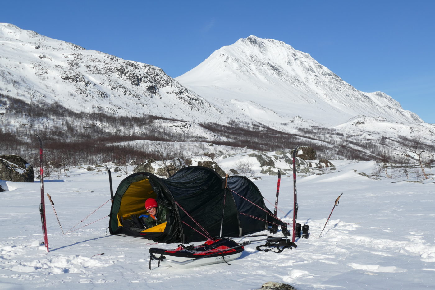 Zum Frühstück scheint wieder die Sonne ins Zelt 16. April 2018 1400 × 933 Eis, Schnee und Kanelbullar – Kungsleden Teil 5