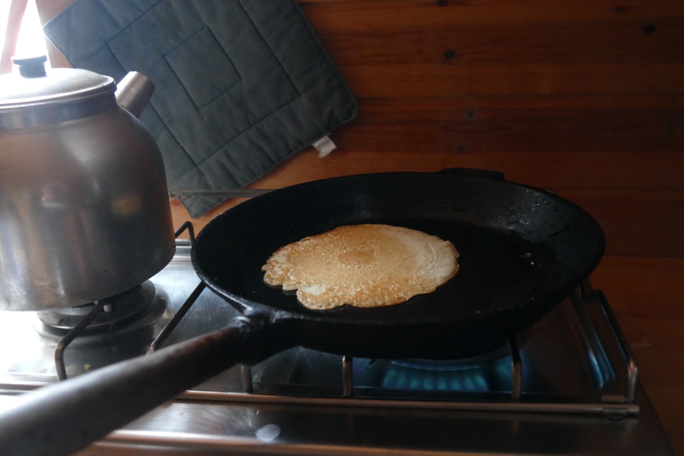 Bester Fund: Gleich zwei Mal haben wir in Hütten zurückgelassene Packungen Palatschinkenteigmischung gefunden. Was kann man sich Besseres vorstellen als unerwartet Palatschinken auf das Menü setzen zu können?