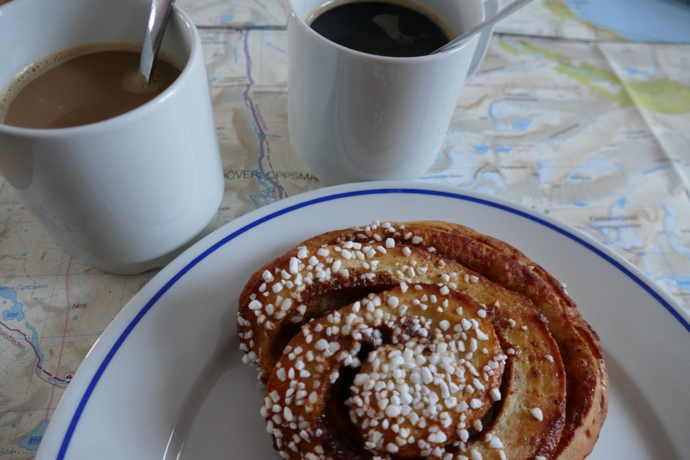 Beste Kanelbullar: Entgegen unserer Hoffnung war es gar nicht so leicht unterwegs Kanelbullar zu pflücken 🙂 . Aber in der Kebnekaise-Fjällstation haben wir uns zwei frischgebackene Exemplare geleistet – und sehr genossen.