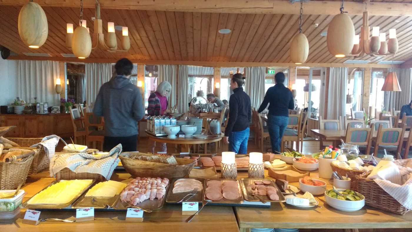 Größter Luxus: Frühstück in den Fjällstationen. Frisch gebackenes Brot, Haferbrei, gekochte Eier, Kaffee, Müsli, Käse, Wurst, Joghurt, Marmeladen, Gemüse, Knäckebrot, Butter. Luxus eben.