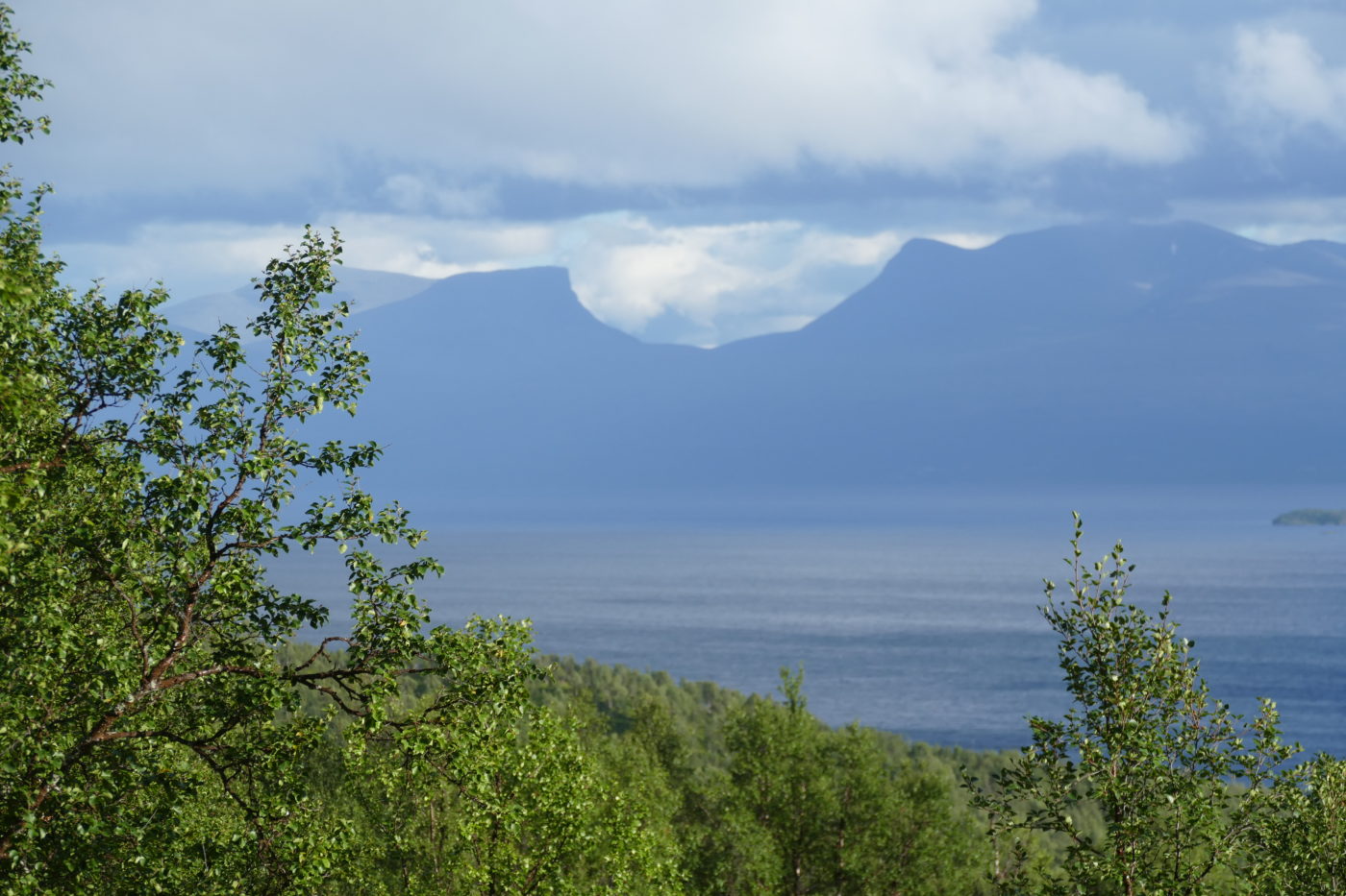 Besonders gut gefällt uns der Abschnitt dieser Wanderung, der uns durch den norwegischen Dividalen Nationalpark führt. Hier gibt es alte Föhrenwälder, in denen die toten, verwitterten, verzwirbelten Bäume wie Skulpturen aus Holz in der Landschaft stehen. Das Wandern auf weichem Waldboden ist herrlich und die Heidelbeeren, die hier in Unmengen wachsen, zwingen uns immer wieder zu süßen Pausen. Neben uns rauscht ein wilder Fluss, der sich über schroffe Felsen stürzt, und wir fühlen uns an die Natur der kanadischen Rockies erinnert. Ein besonders schönes Eck Norwegens!