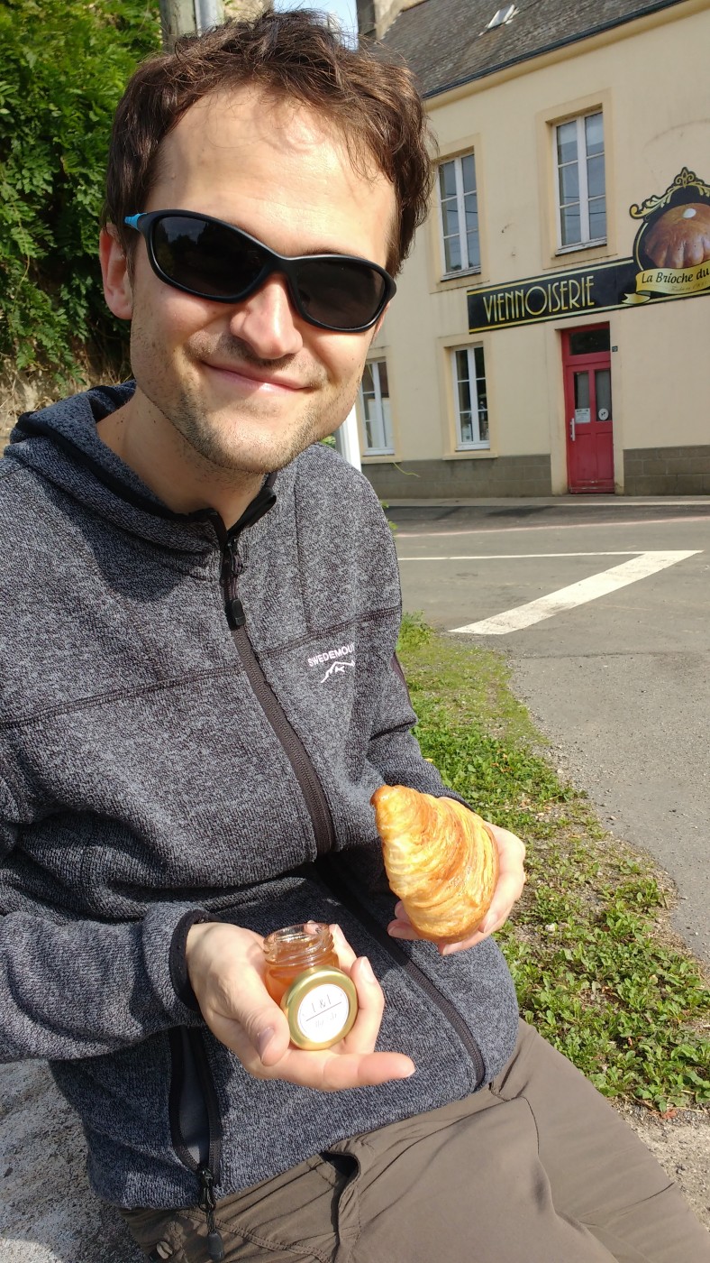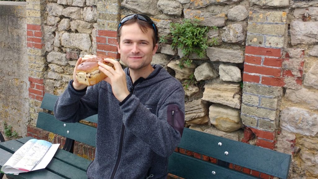 Wenn man den ganzen Tag Rad fährt, wird man ganz schön hungrig. Auch im Vergleich mit mehrtägigen Wanderungen haben wir für uns festgestellt, dass der Kalorienverbrauch beim Radfahren besonders groß ist. Ein paar Stunden nach dem Frühstück, so etwa gegen 10:30, hat sich immer ein großes Loch in unseren Mägen aufgetan und wir haben begonnen nach einer Bäckerei Ausschau zu halten. Was für ein Glück, dass es auf unserem Weg (vor allem in Frankreich) so viele Bäckereien gab! So haben wir immer etwas Gutes für unser Zweitfrühstück, eines unserer Lieblingsrituale beim Radfahren, gefunden. Man muss nur aufpassen, dass man diese Gewohnheit dann nicht mit in den Alltag nimmt – denn Zweitfrühstücksappetit wäre eigentlich immer vorhanden 😉