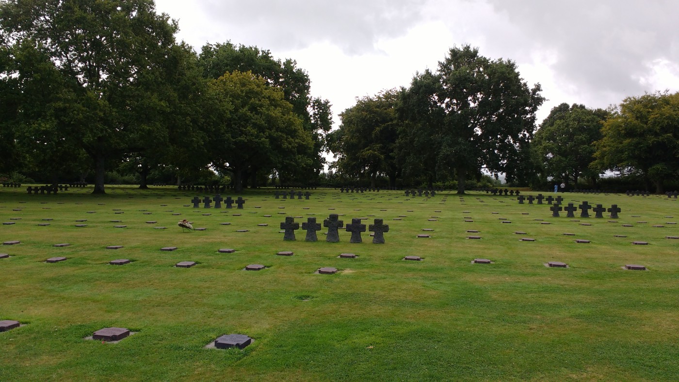 Einer der eindruckvollsten Plätze, die wir auf unserer Fahrt gesehen haben, waren die Soldatenfriedhöfe in der Normandie. Besonders hat uns der deutsche Friedhof beeindruckt, an dem 15.000 Soldaten der Wehrmacht begraben sind. Dieser Friedhof ist ein sehr bewegendes, sehr düsteres Mahnmal gegen den Krieg und die unfassbare Anzahl von Toten, die hier bestattet sind, machte uns sehr betroffen – zumal in nahezu allen Gräbern Männer liegen, die jünger als wir waren, als sie gestorben sind. Und über all dem schwebt natürlich das Wissen, dass diese Toten für und wegen einer fürchterlichen Ideologie gestorben sind.