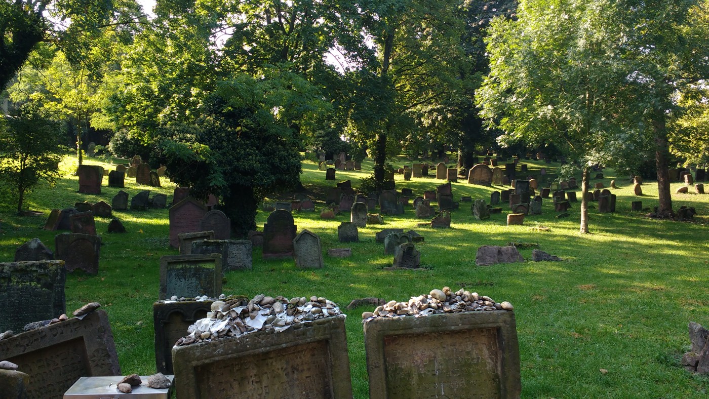 Immer wieder wurden wir überrascht, was wir zufällig am Wegesrand entdeckten. Als eindrucksvolles Beispiel sei ein uralter jüdischer Friedhof in Worms genannt, auf dem die ältesten Gräber mehr als 1000 Jahre alt sind. Auf den Gräbern wichtiger Rabbiner hinterlassen die Besucher Zettelchen mit Gebeten und beschweren diese mit Steinen. Ein sehr beeindruckender, uralter Ort – gut, dass wir dort gehalten haben.